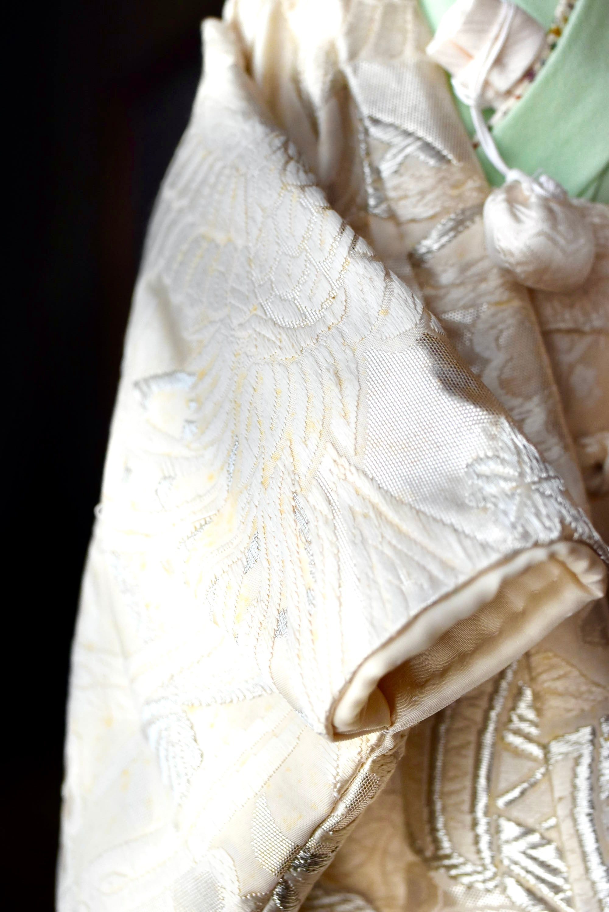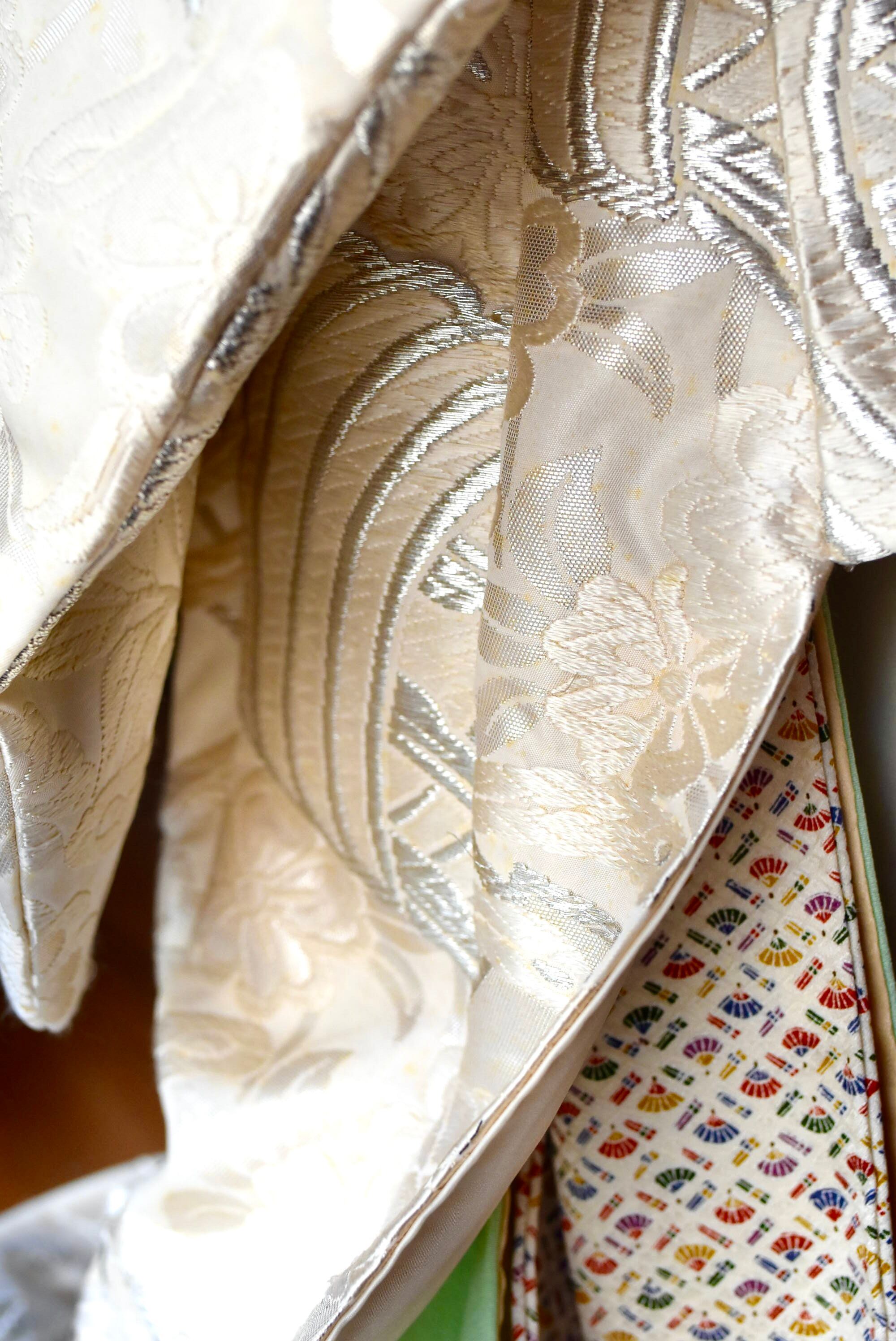◎【日光や照明に要注意!】正絹着物は、太陽の日差しや照明ライト等に長時間当たることにより日焼けを起こし、光の当たっている部分のみ色褪せる場合があります。日のよく入る窓辺付近や照明器具近くはできるだけ避けていただくことをお勧めします。(対策としては、全ての光を防ぐ事は難しいので定期的にこべべの角度を変える事で一方向のみの色褪せにならないよう緩和することができます。また照明ライトは必要な時だけ使用すると良いです。)