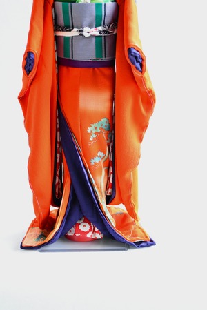 五つ紋付の振袖こべべ作品。高さ60cm『晴れこべべ』シリーズ。- hare cobebe -